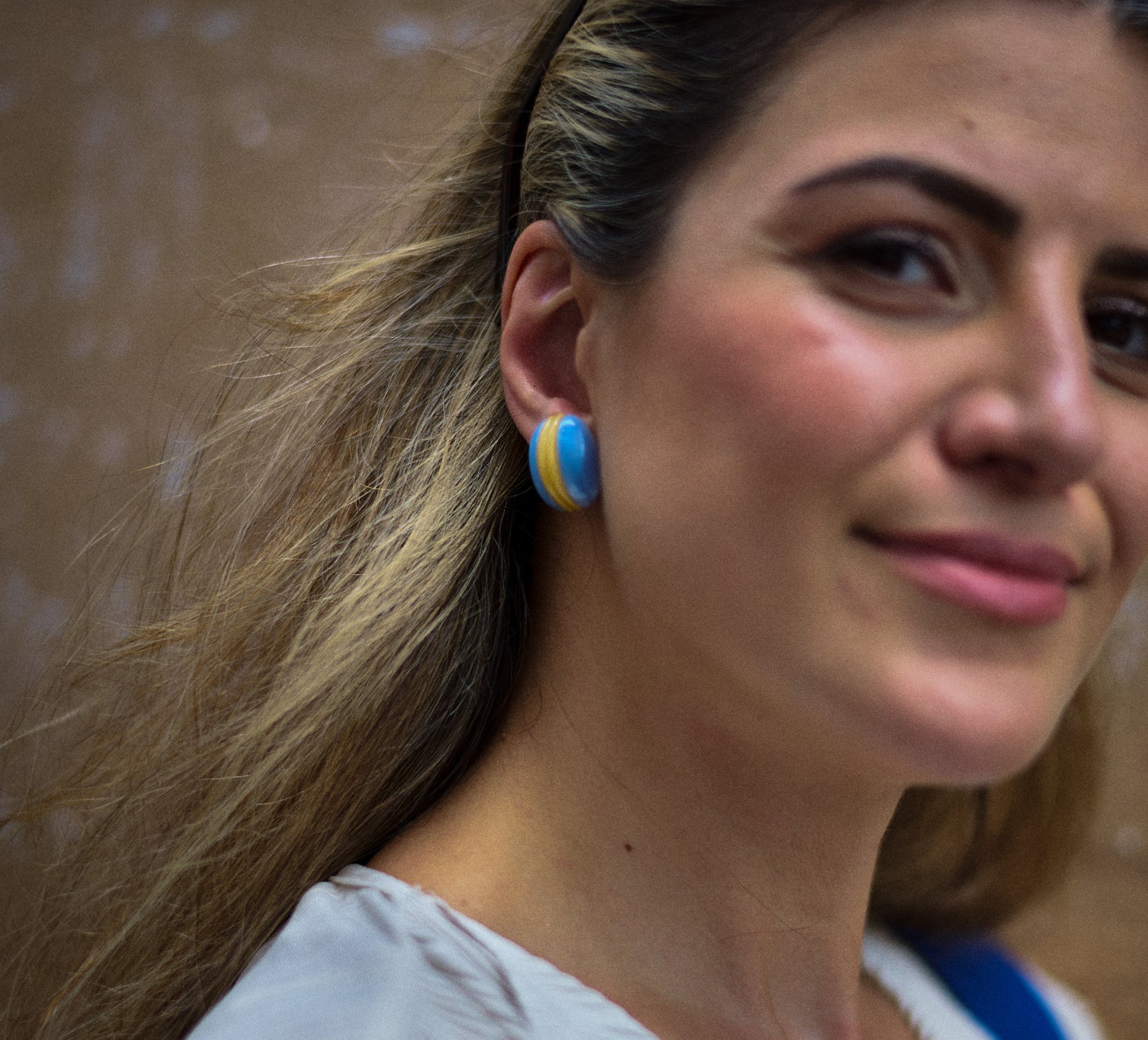 Mod Sky Blue & Lemon Stripe Clip-On Earrings – 1960s Pop Style
