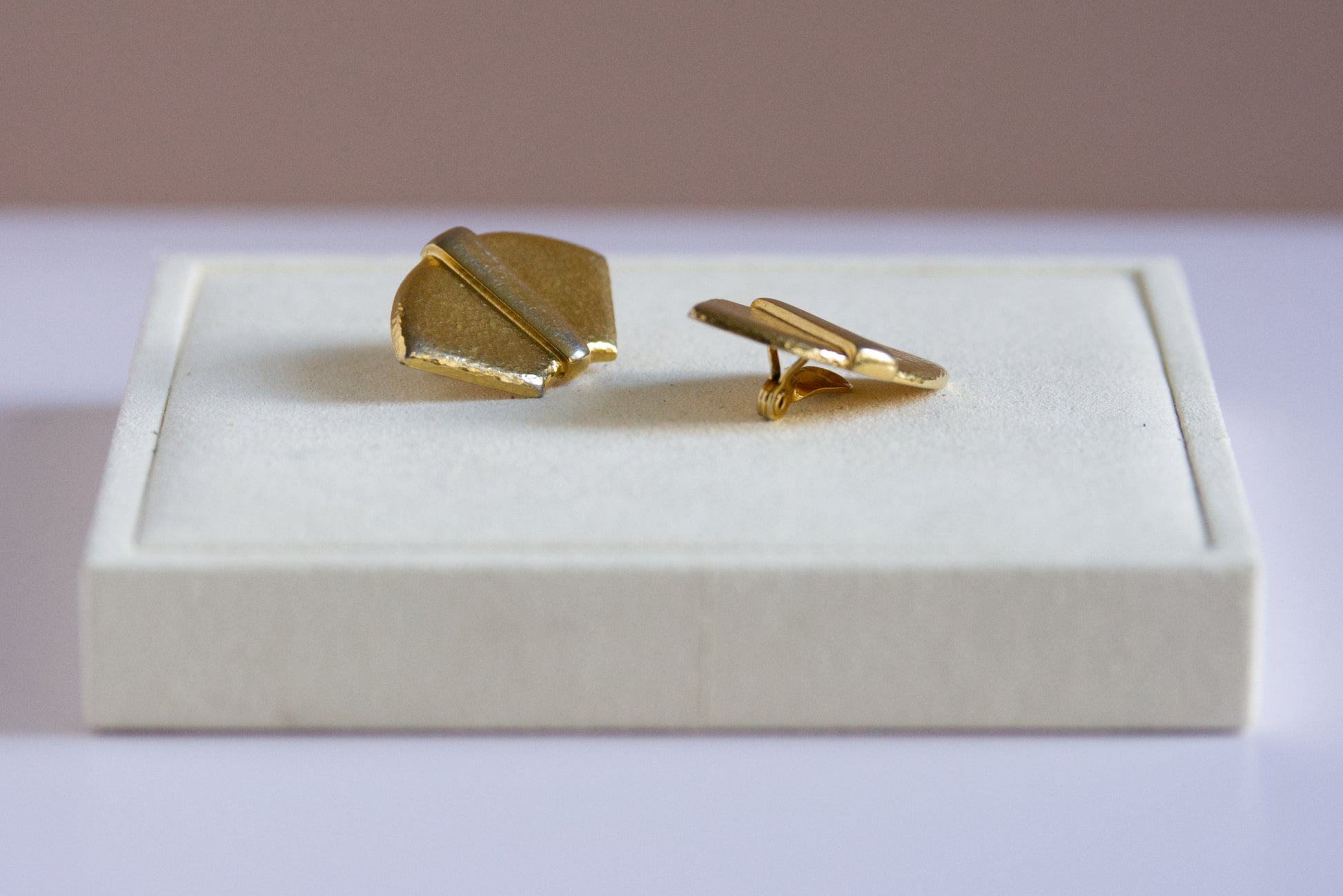 1980s Monet Gold Clip-on Fan Shape Earrings