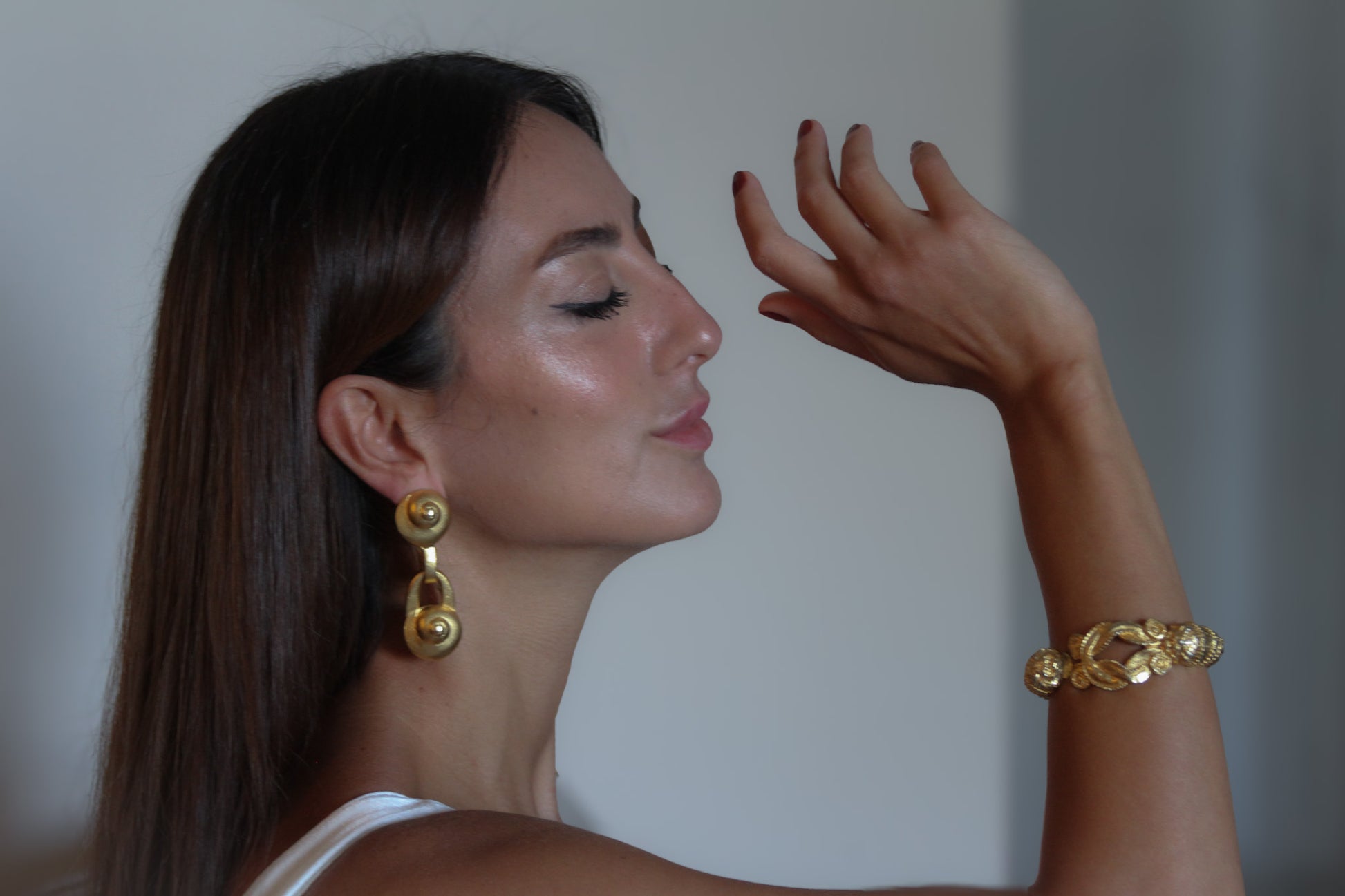 The bracelet opens with a secure hinge for easy wear and fits comfortably on most medium wrists. A statement accessory perfect for elevating both casual and dressy looks.