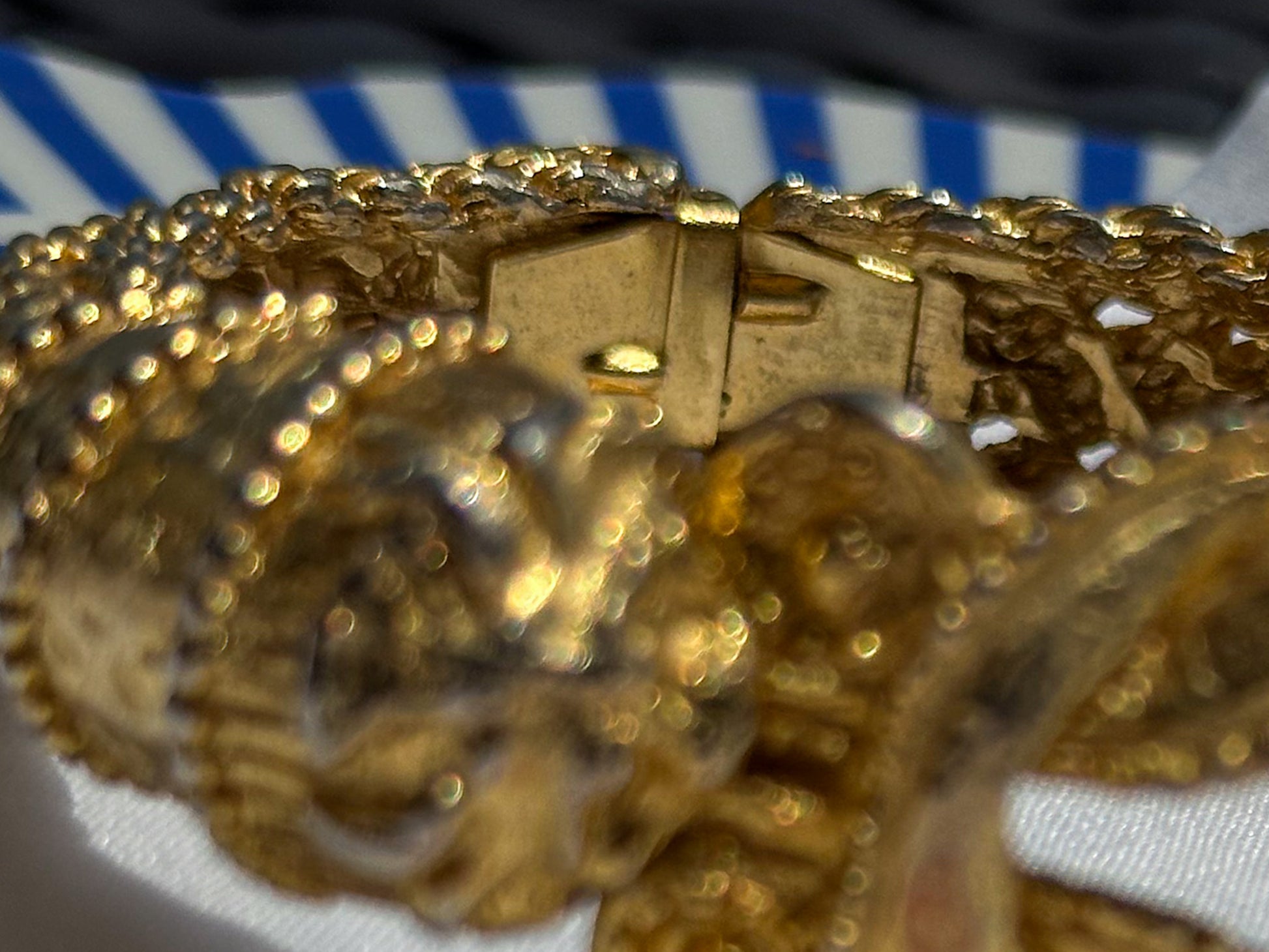 Lion Head Gold-Tone Statement Bracelet – 1980s Power Glam