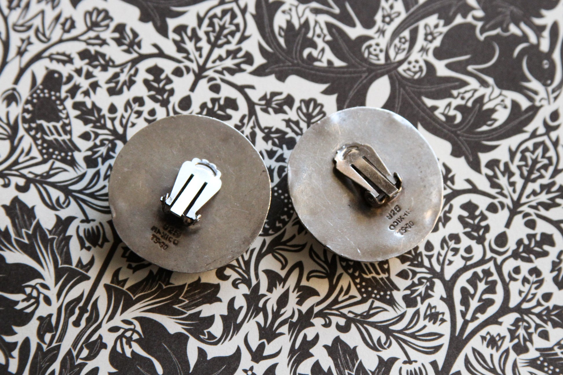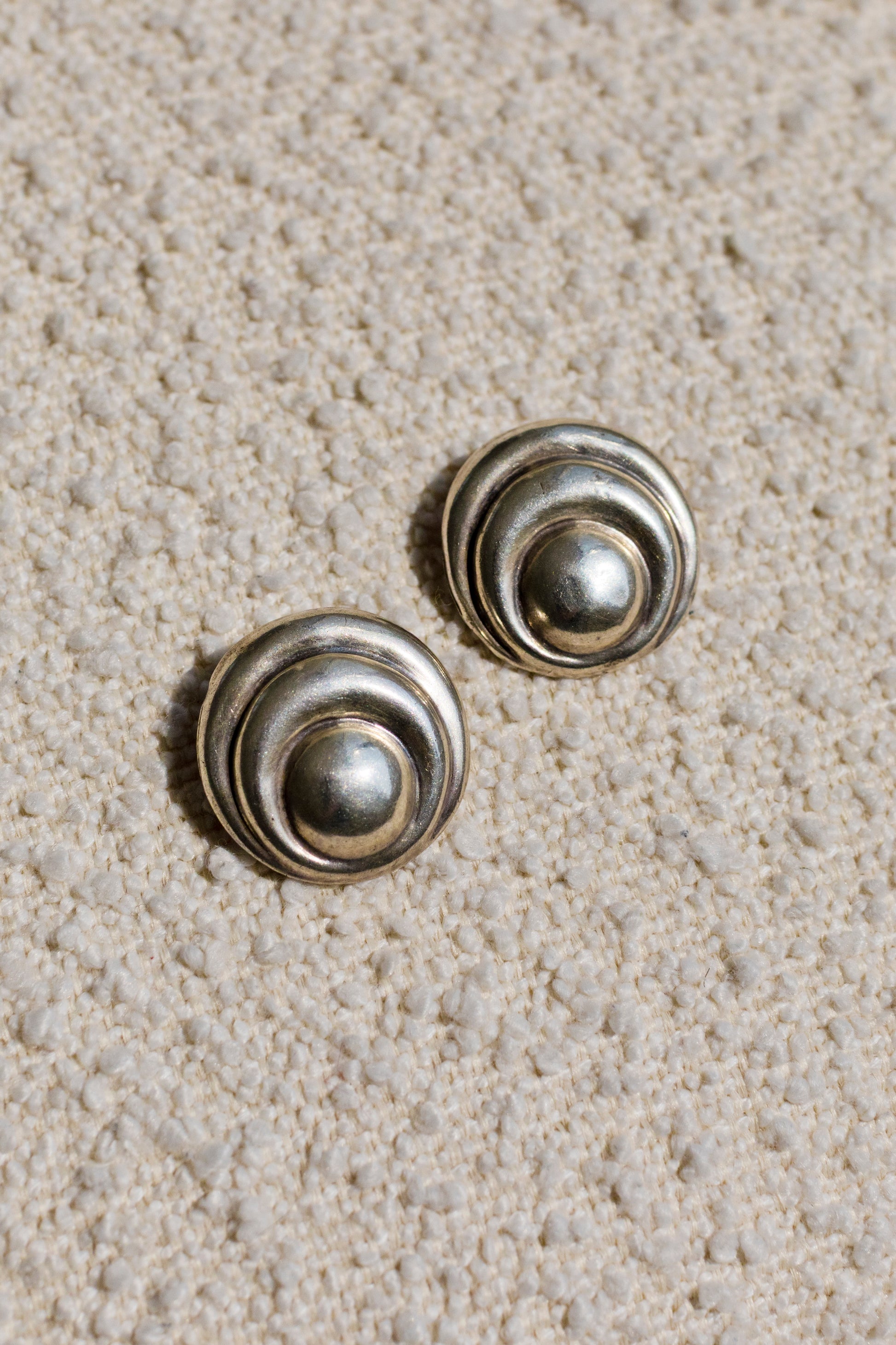 Make a bold yet timeless statement with these sculptural sterling silver clip-on earrings, crafted in Mexico from solid 925 silver. Featuring a domed concentric circle design, these earrings channel vintage modernist elegance with a touch of architectural flair. Lightweight yet impactful, they frame the face beautifully and pair effortlessly with both casual and elevated looks.