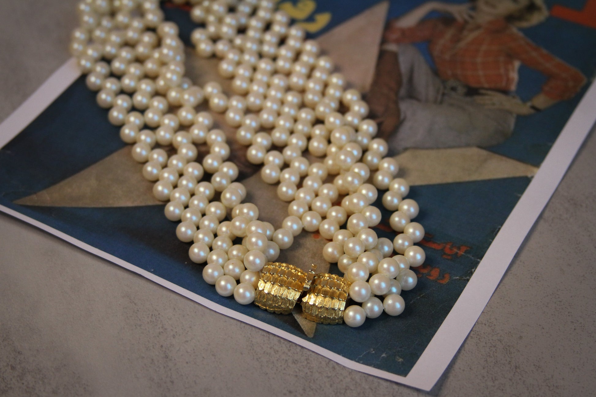 Multi-Strand Faux Pearl Necklace with Gold Clasp