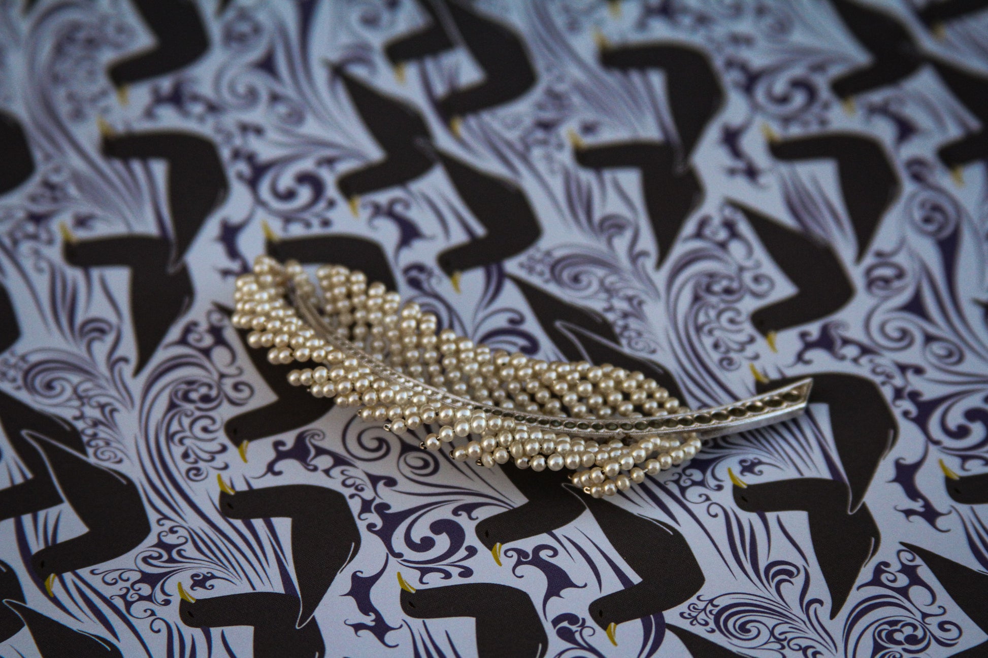Pearl Feather Brooch – Silver-Tone Leaf with Seed Pearls