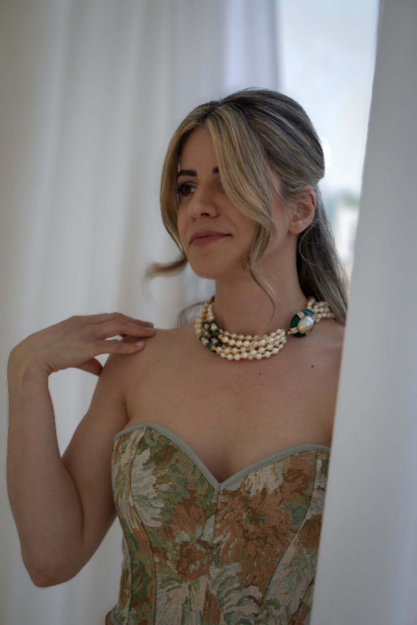 Perfect for evening soirées, weddings, or adding drama to a strapless dress (as styled here), this piece instantly elevates your look with Old Hollywood elegance.