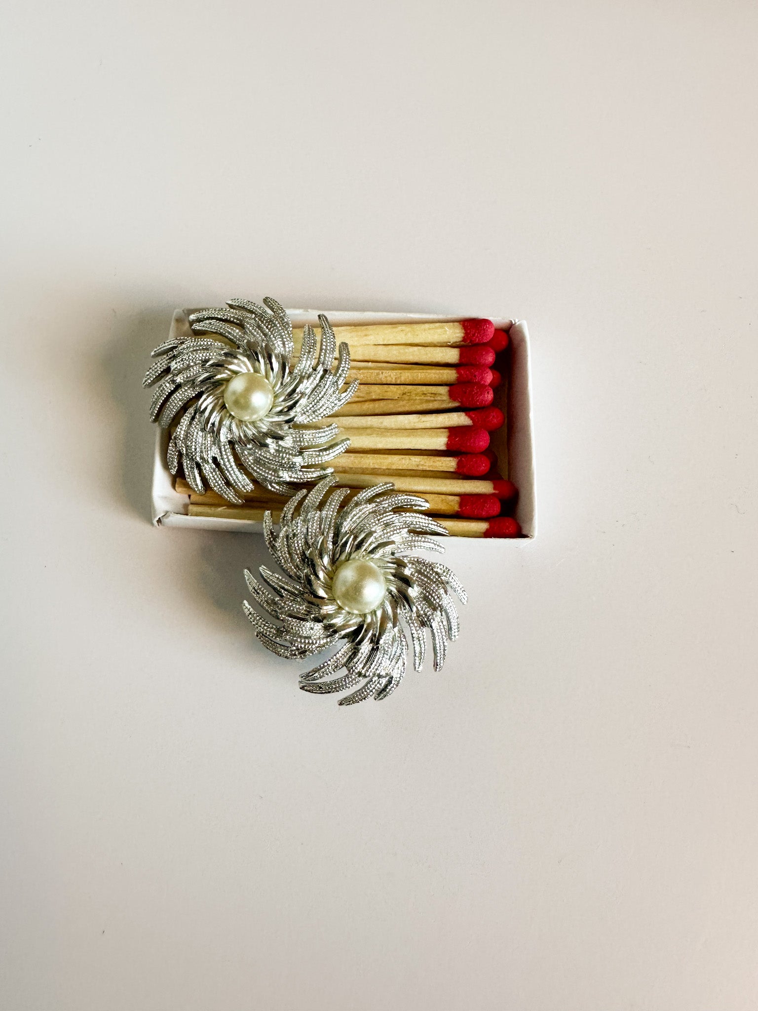 Sarah Coventry Vintage Silver Tone Flower Faux Pearl Clip-on Earrings