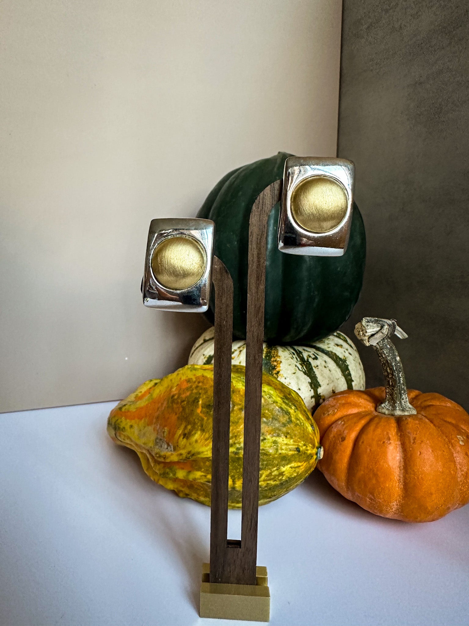Silver Rectangle Clip-on Earrings with Gold Circle in the Middle