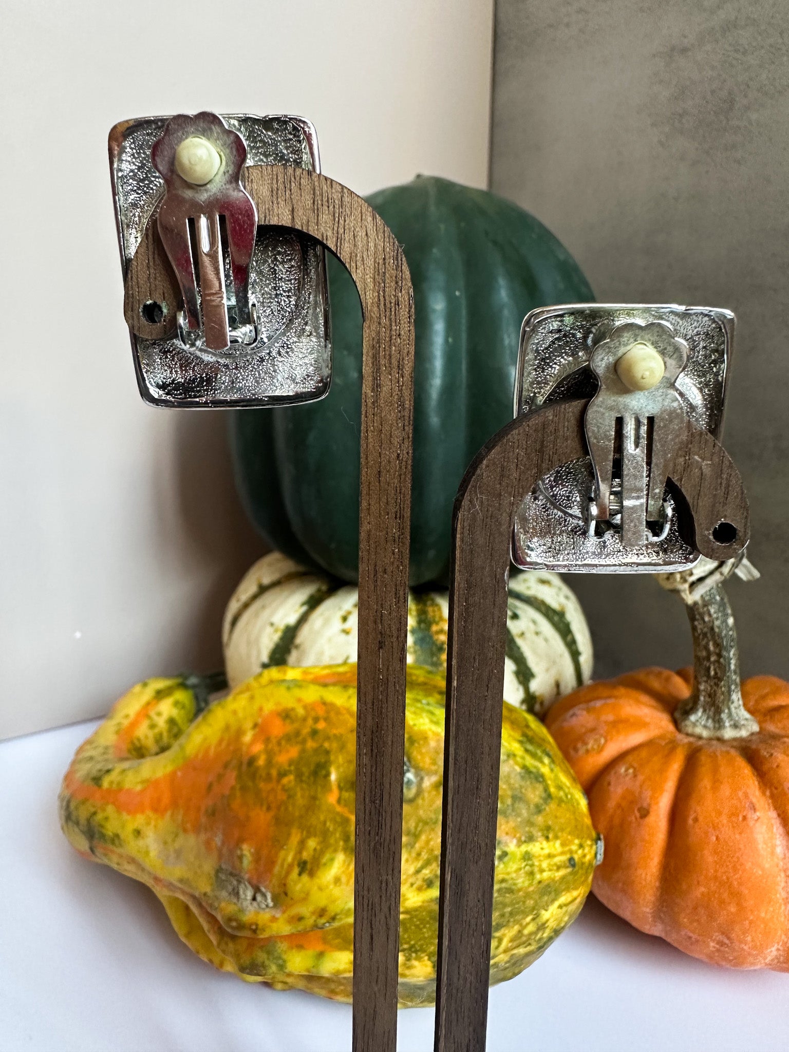 Silver Rectangle Clip-on Earrings with Gold Circle