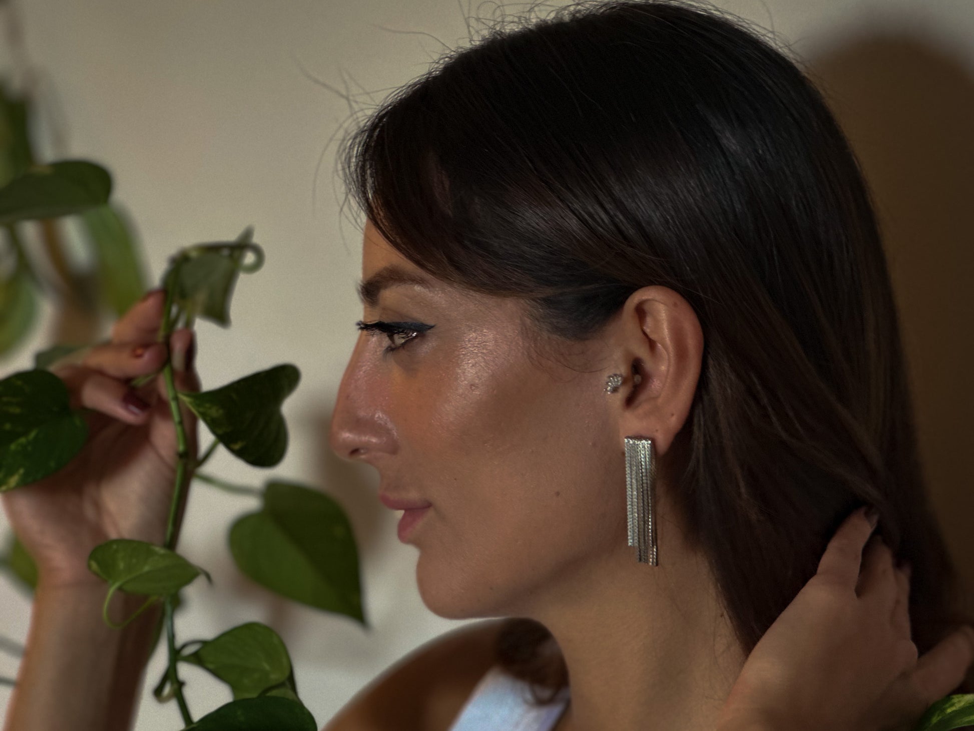 Make a bold statement with these vintage silver-tone fringe earrings featuring cascading mesh strands that catch the light with every movement. The structured yet fluid design adds a touch of glam and sophistication—perfect for elevating both eveningwear and everyday outfits. These clip-ons bring iconic 1980s flair to any look with their high-shine finish and architectural appeal.