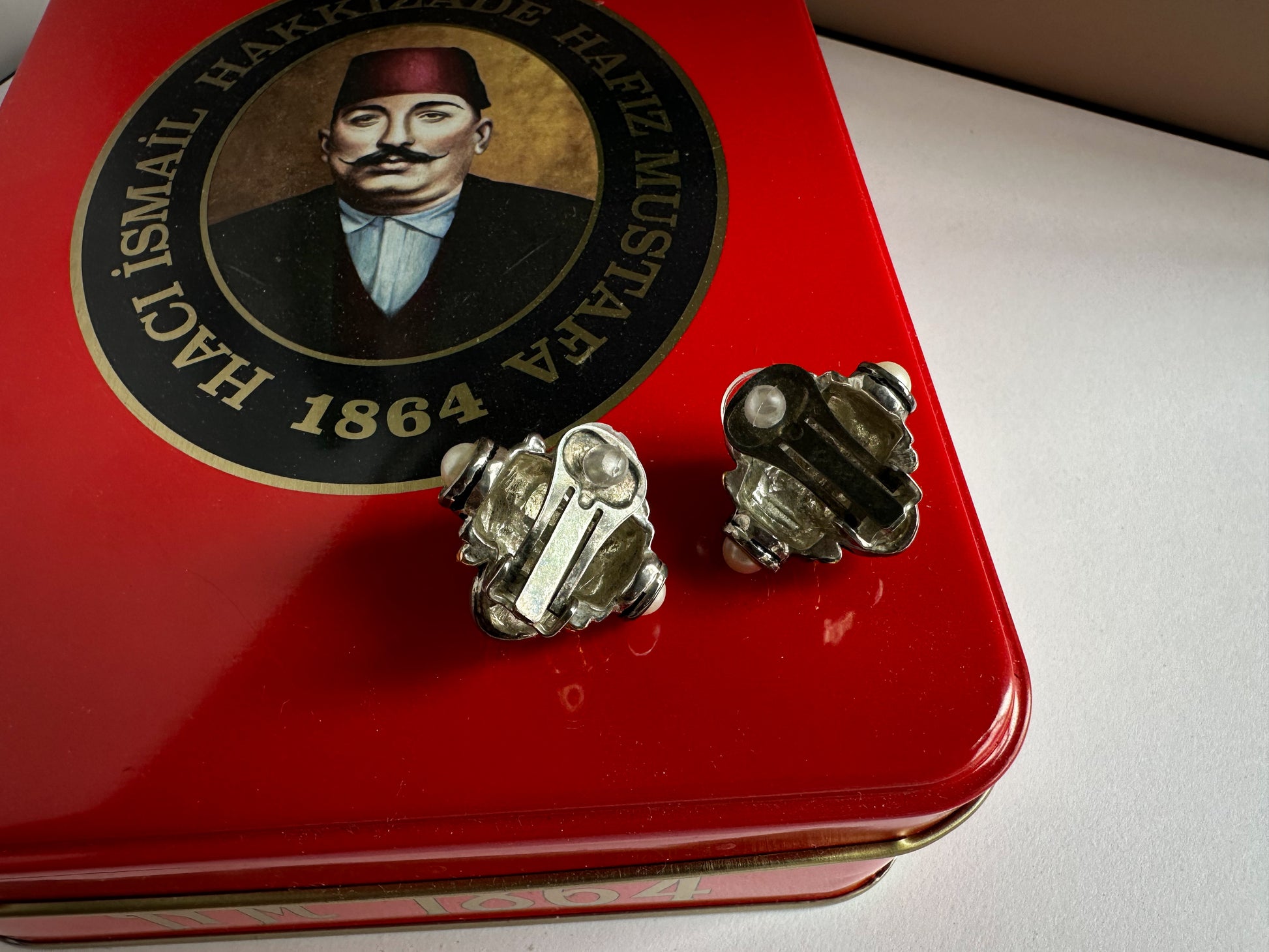 These vintage clip-on earrings feature a bold, sculptural silhouette crafted from oxidized silver-tone beads, accented with textured gold-tone rings. Each earring is finished with a white bead at both ends, creating a refined contrast and a timeless, boho-meets-baroque feel.